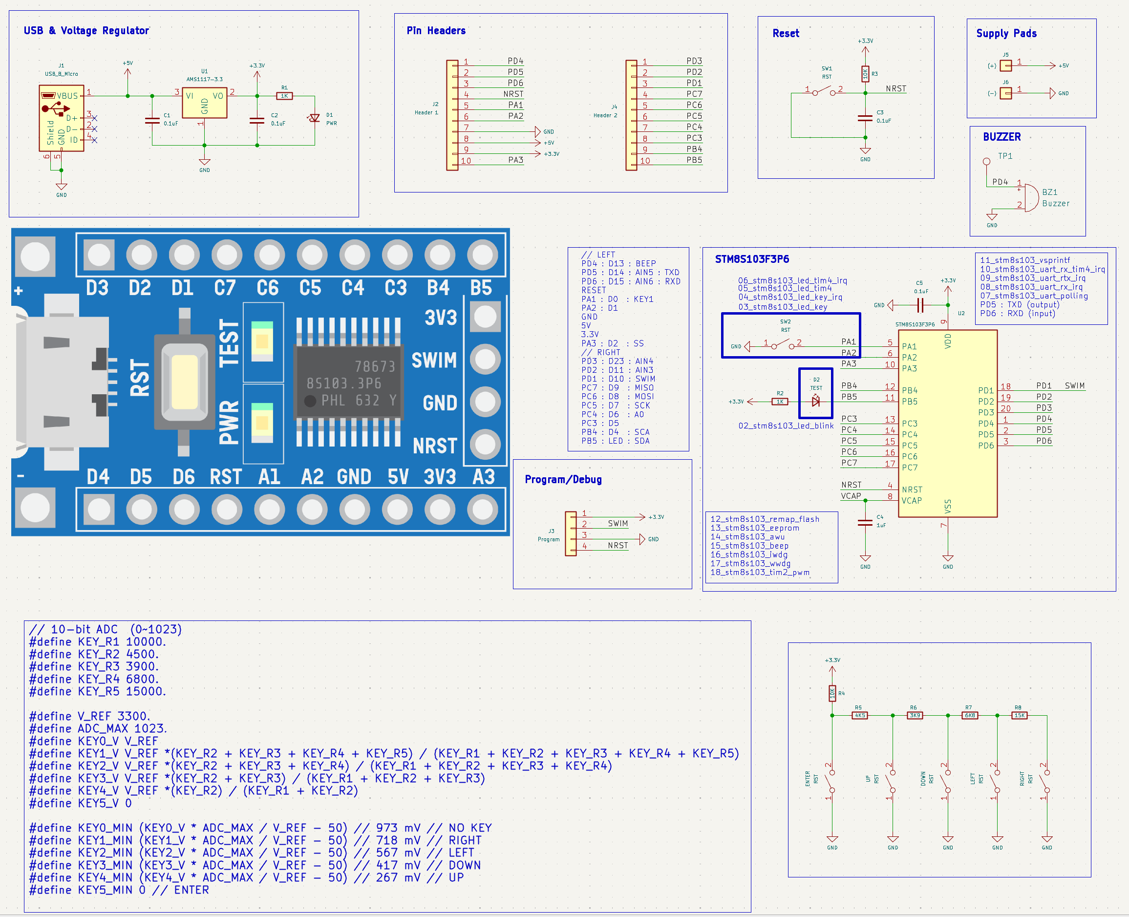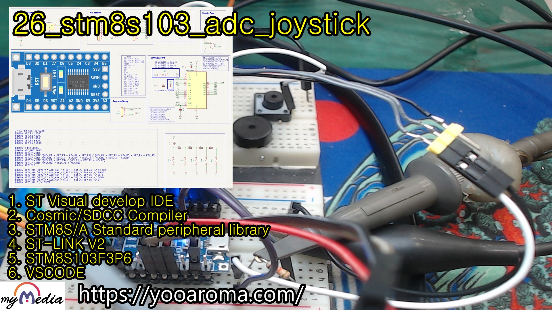 STM8S103 MCU를 사용하여 ADC를 통해 조이스틱의 5개의 방향 키를 읽는 예제 가이드입니다.