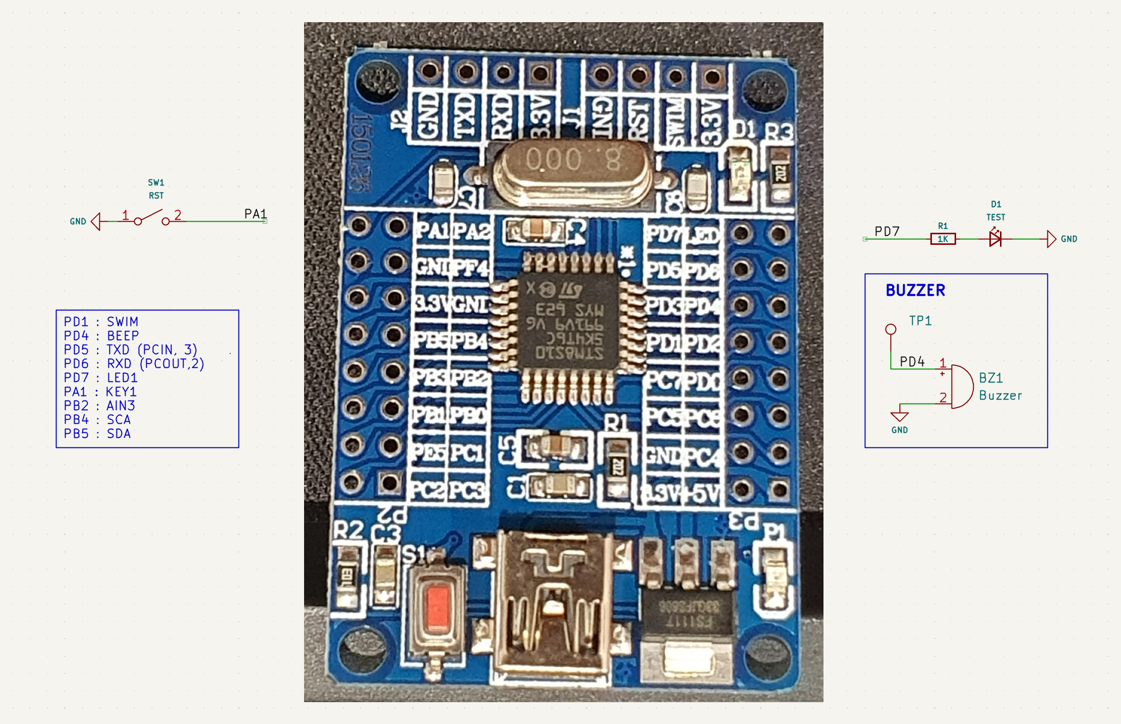 STM8S105 MCU를 사용하여 KEY, LED, BEEP등을 제어하는 예제 가이드입니다.